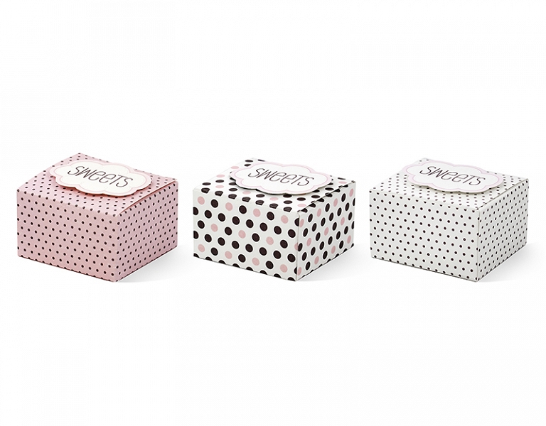 krabičky růžovohnědé puntíky