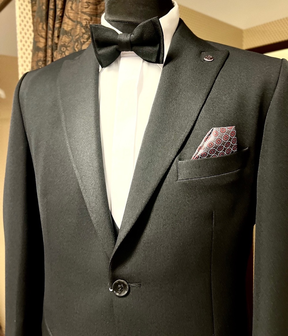 černý motýlek a bílý kapesníček
