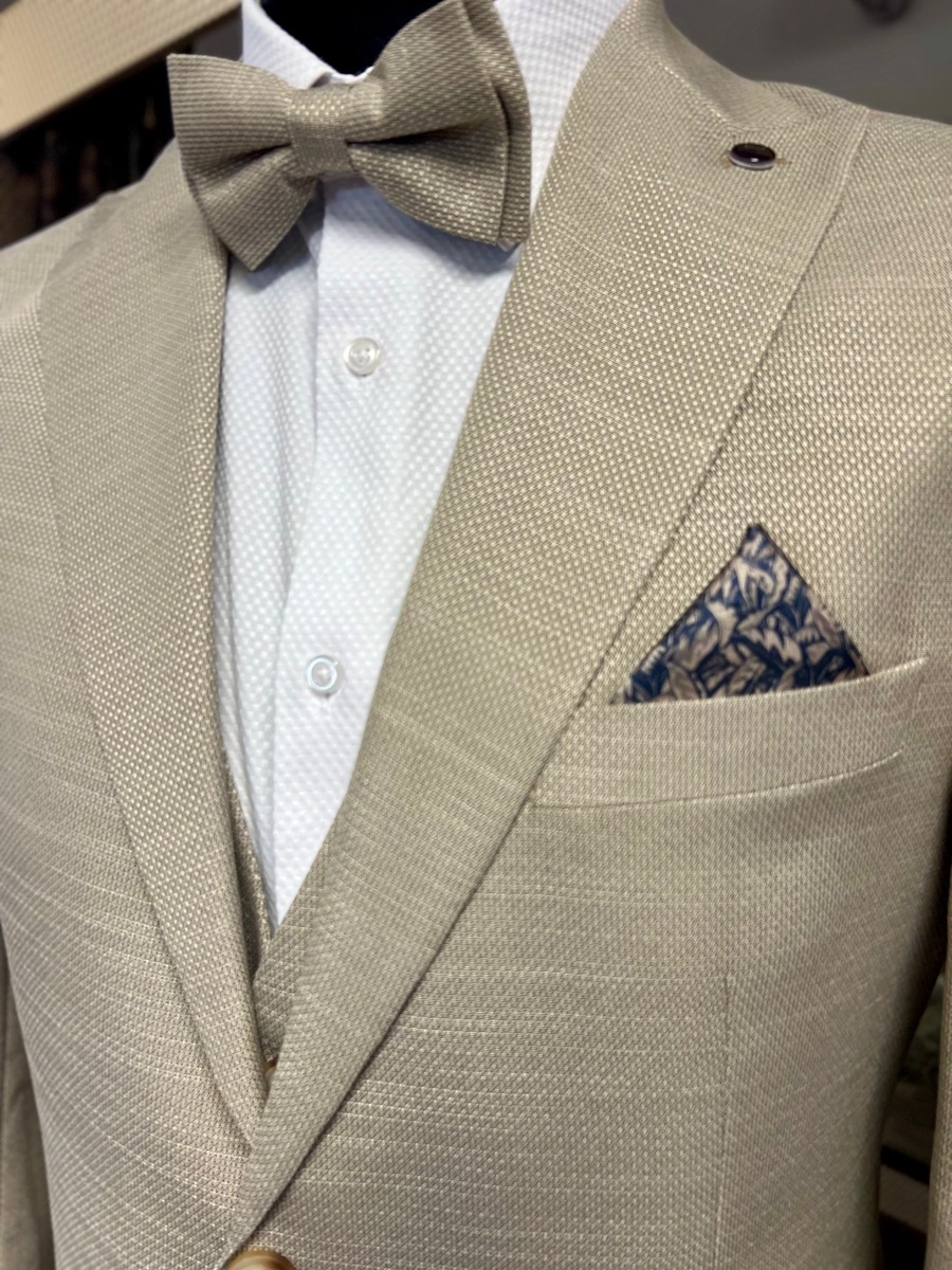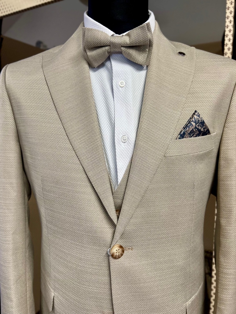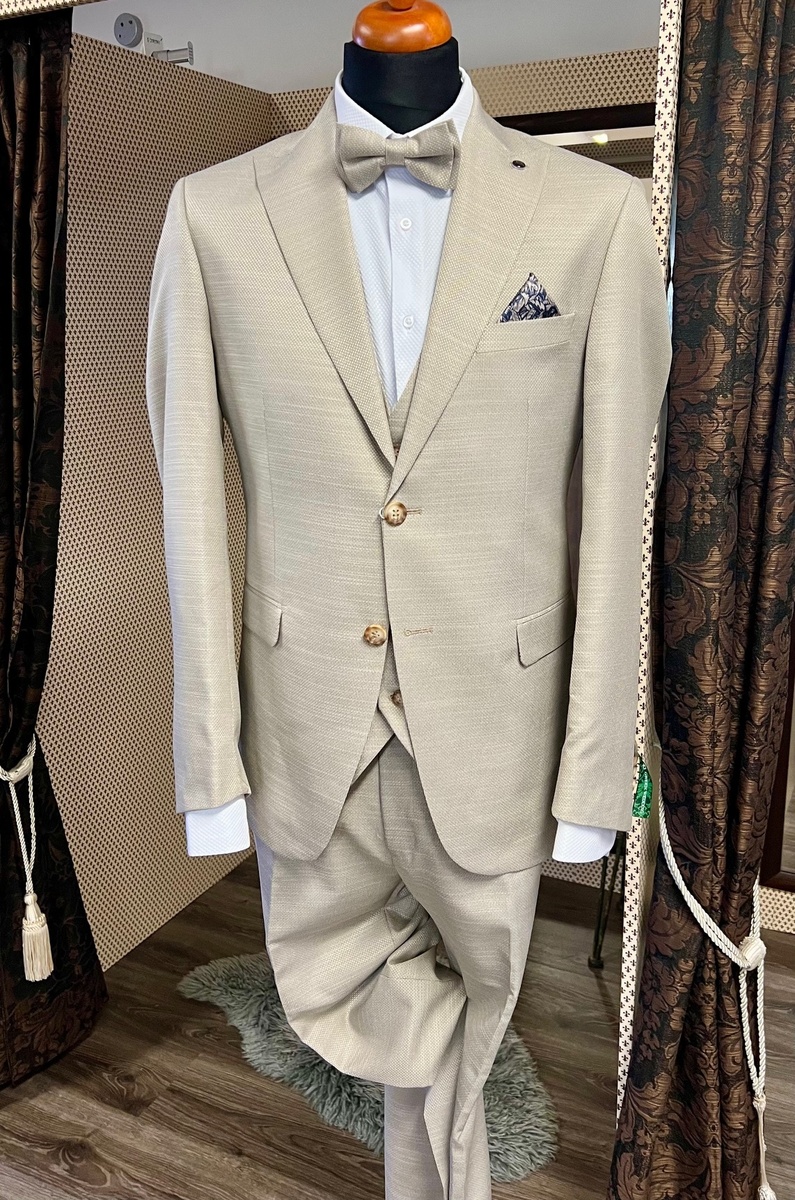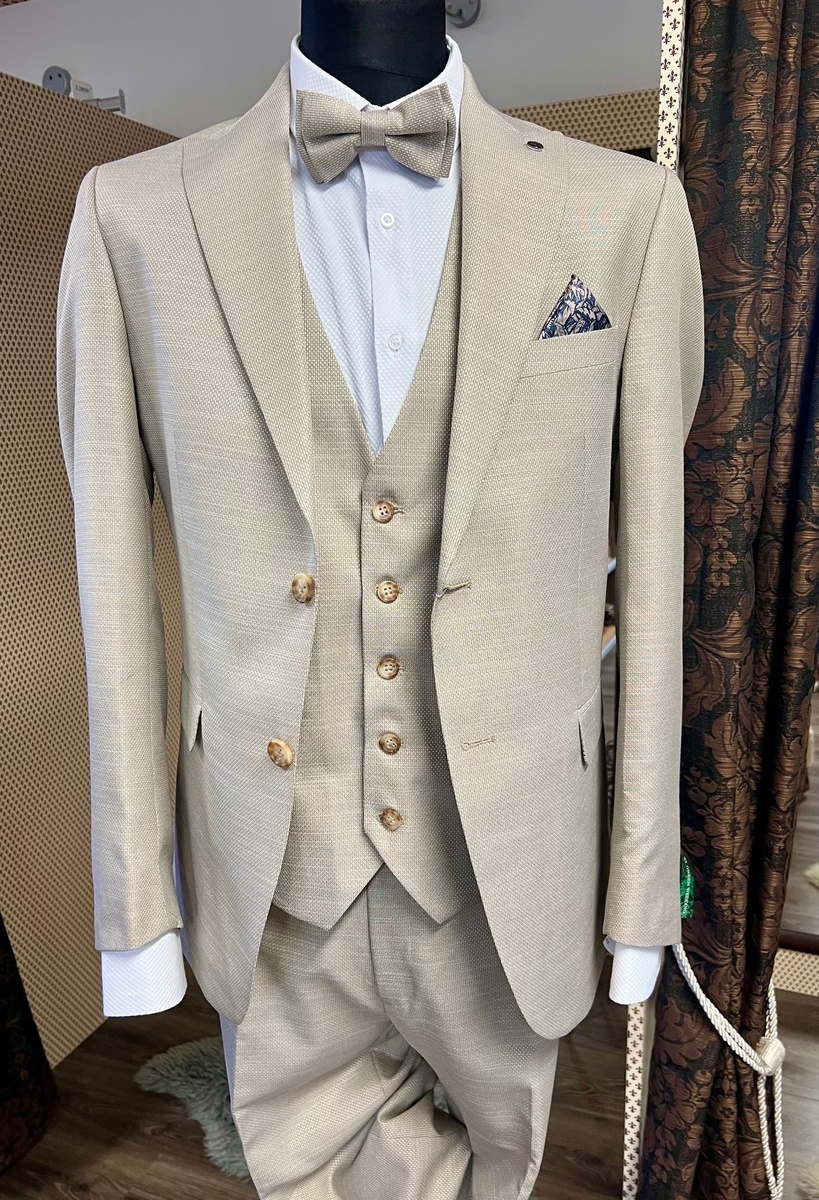 oblek Pagus krémový režný s vestou15097/17