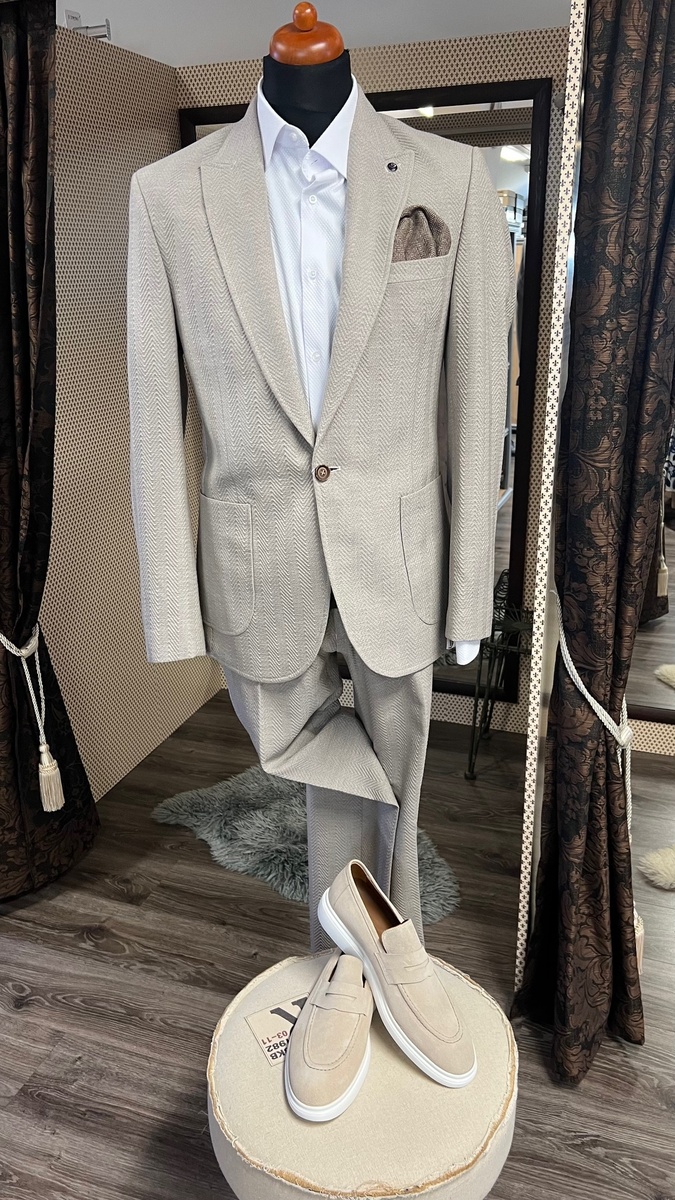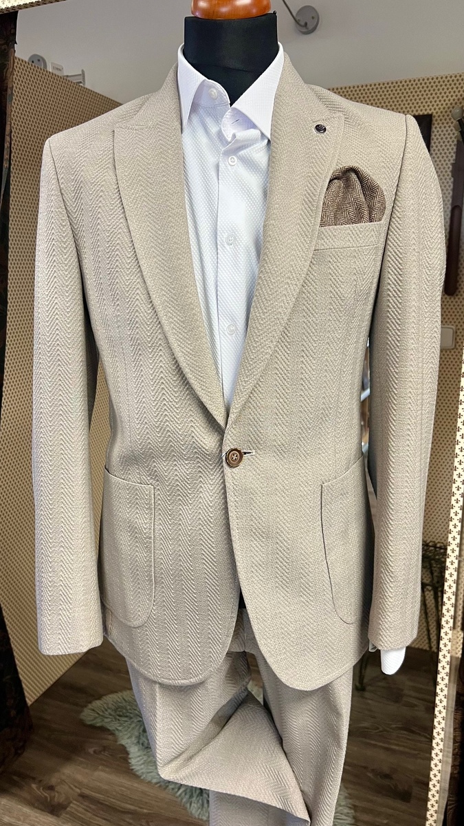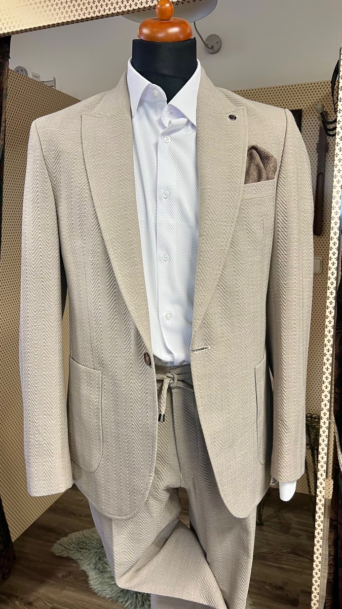 oblek strečový Pagus krémový vzor 10021/17