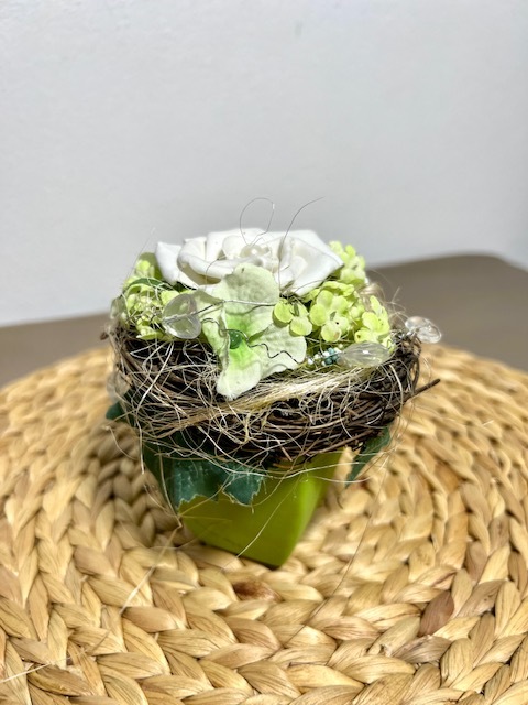květináč zelený s hnízdem