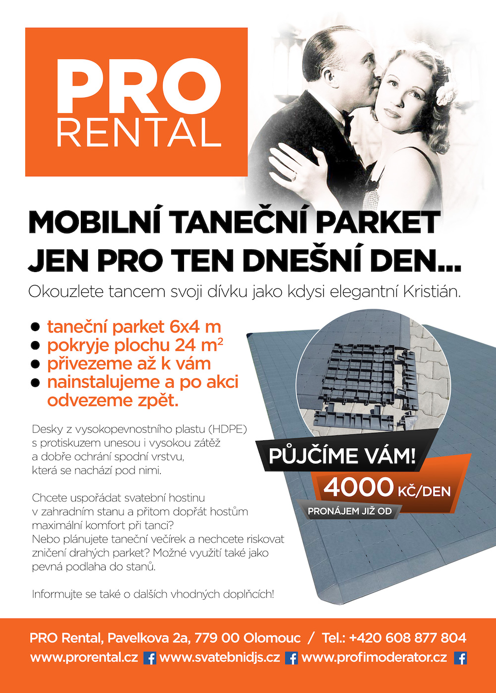půjčovné rozměr 6 x 4 m - 4000 Kč ( taneční parket )