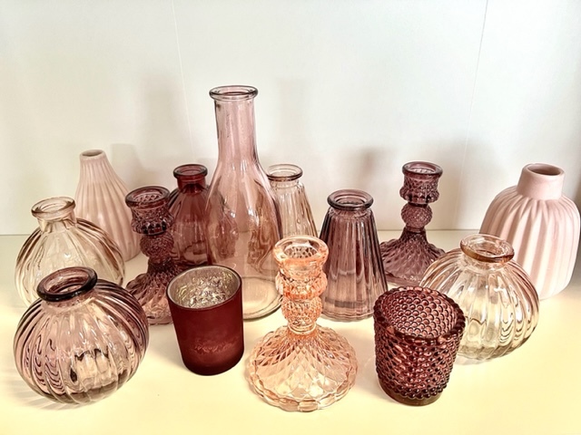 ke kombinování s dalšími podobnými vázičkami a svícny v růžové barvě